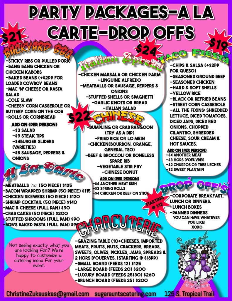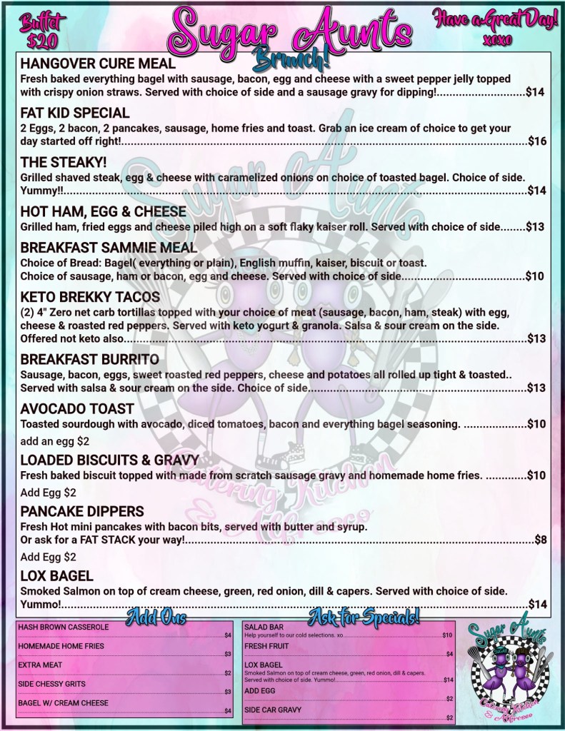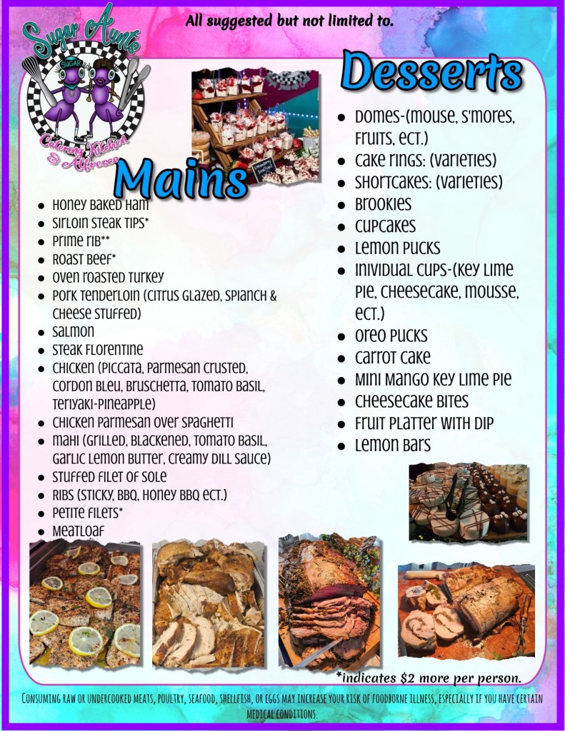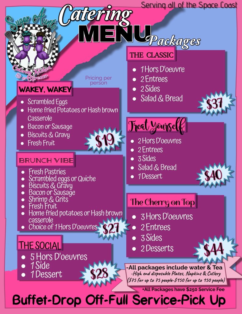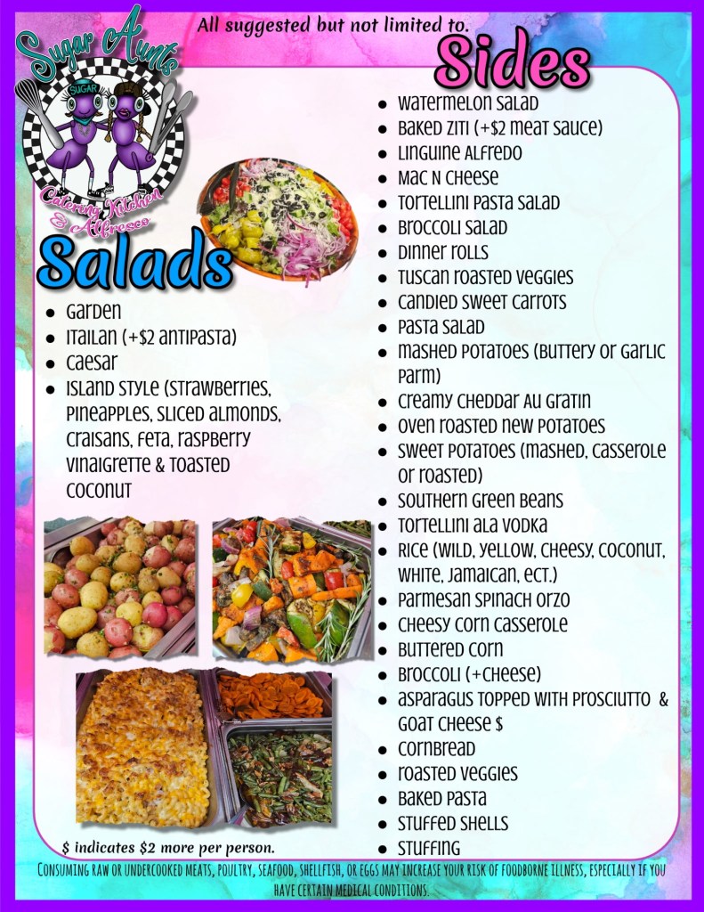 So leave the cooking to the Sugar Aunts! We’ll work closely with you to dream up a menu that delights the senses and has your guests raving. Our passion for great food and customer service guarantees an event that’s both delicious and unforgettable.